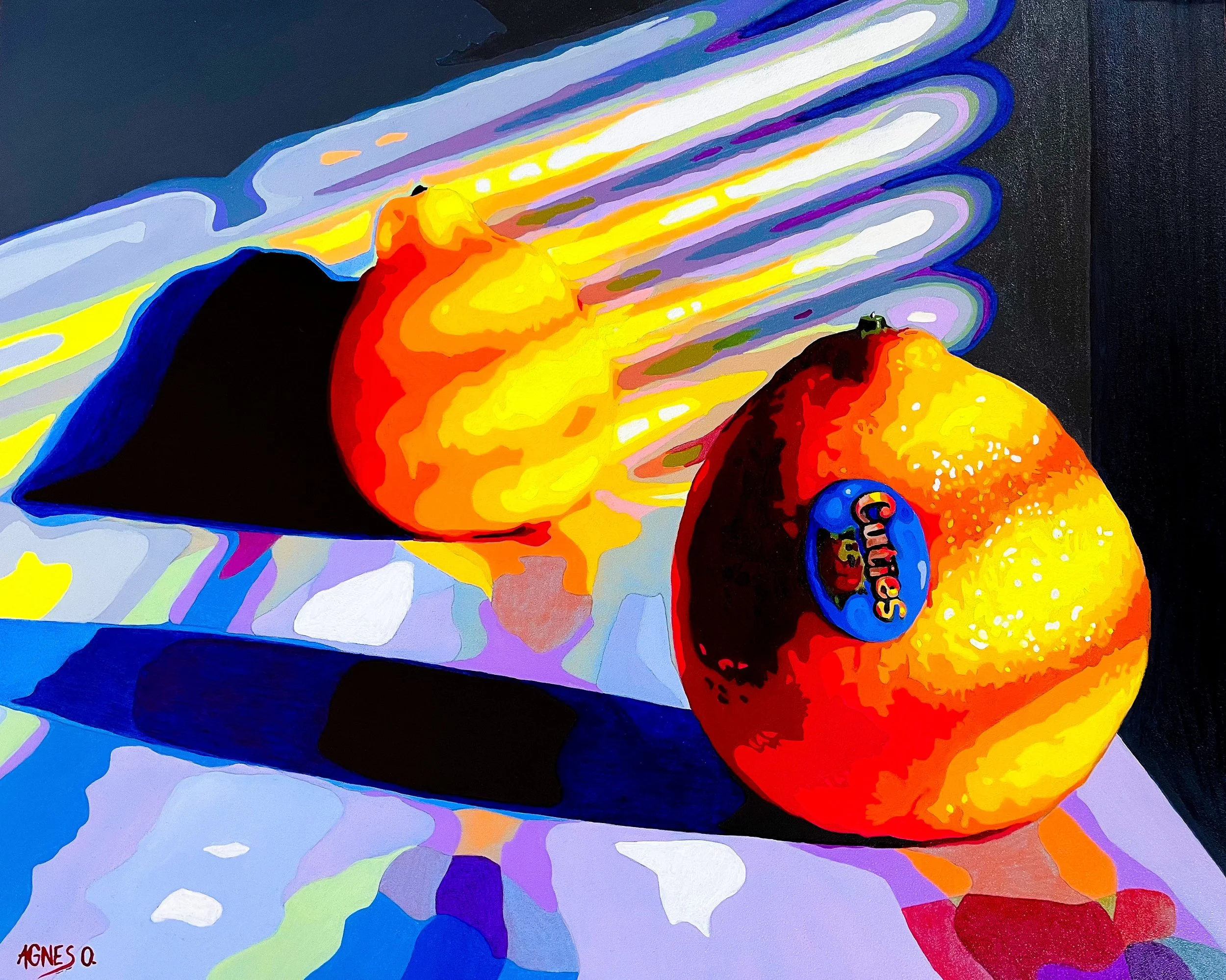 On a winter day, the joyful rays of the sun bouncing around the house from one object to another were music to my ears. I found a pair of mandarin "Cuties" in my kitchen, ideal characters to star in this January painting. The long shadows cast this time of year added drama to the show. In the coming months, the angle of the rays would be higher, and the effect of the shadows softer. I needed to capture THIS moment before it passed.